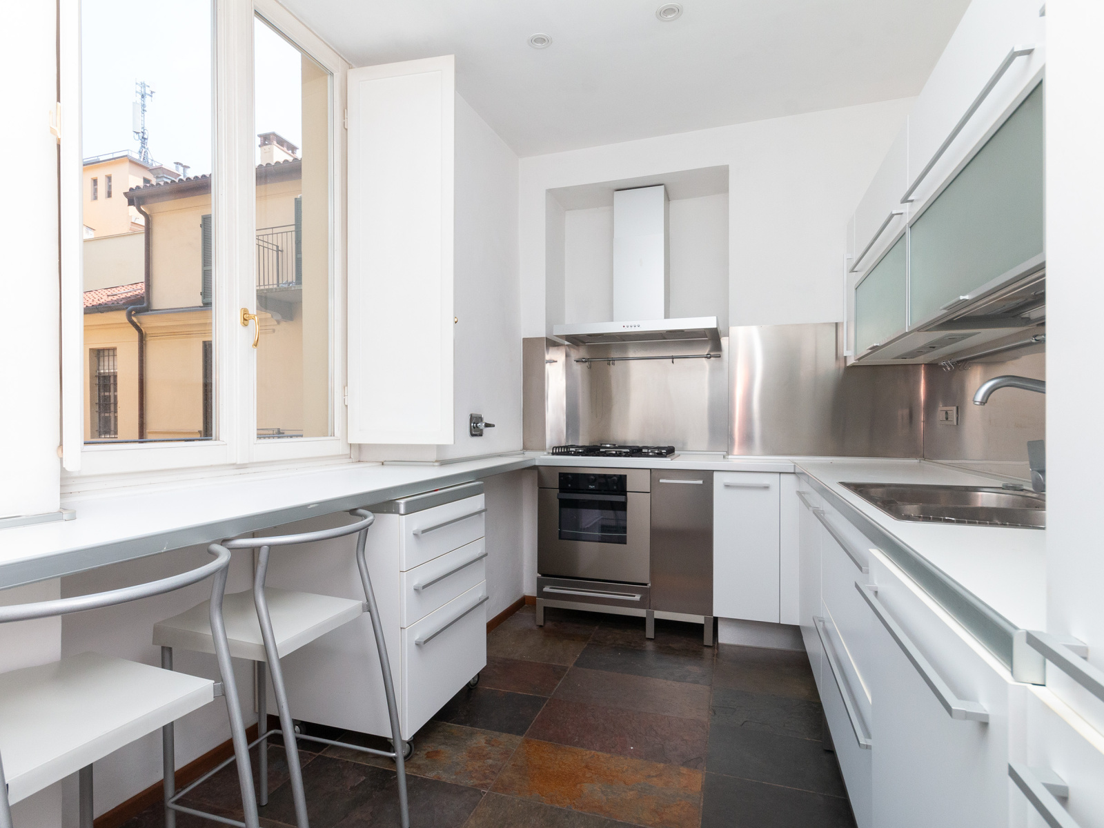 Nel cuore del centro di Torino, in un palazzo ottocentesco all'angolo tra via Cesare Battisti e via Lagrange, l'appartamento si trova nelle immediate vicinanze di piazza Carignano, una delle piazze più eleganti della città, sede del primo parlamento italiano e oggi del Teatro e del ristorante "Del Cambio".