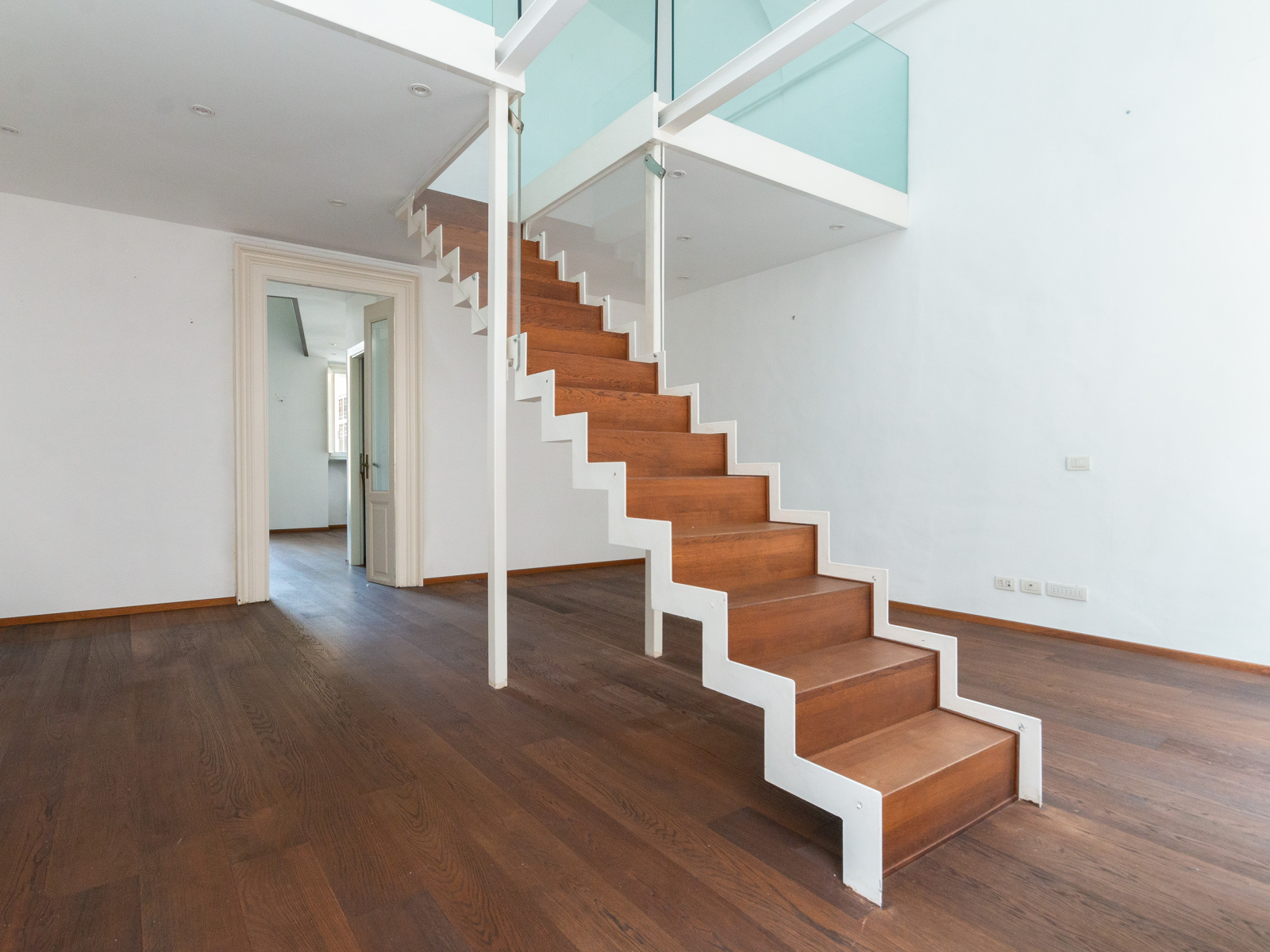 L'appartamento di 280 mq, situato al secondo piano, è stato ristrutturato di recente con materiali di altissimo pregio, ottimizzando al massimo gli spazi grazie anche all'uso dei soppalchi, alcuni dei quali presentano dettagli particolari come pavimenti vetrati. La luminosità dell'appartamento è straordinaria, garantita dalle ampie finestre che inondano gli ambienti di luce naturale.