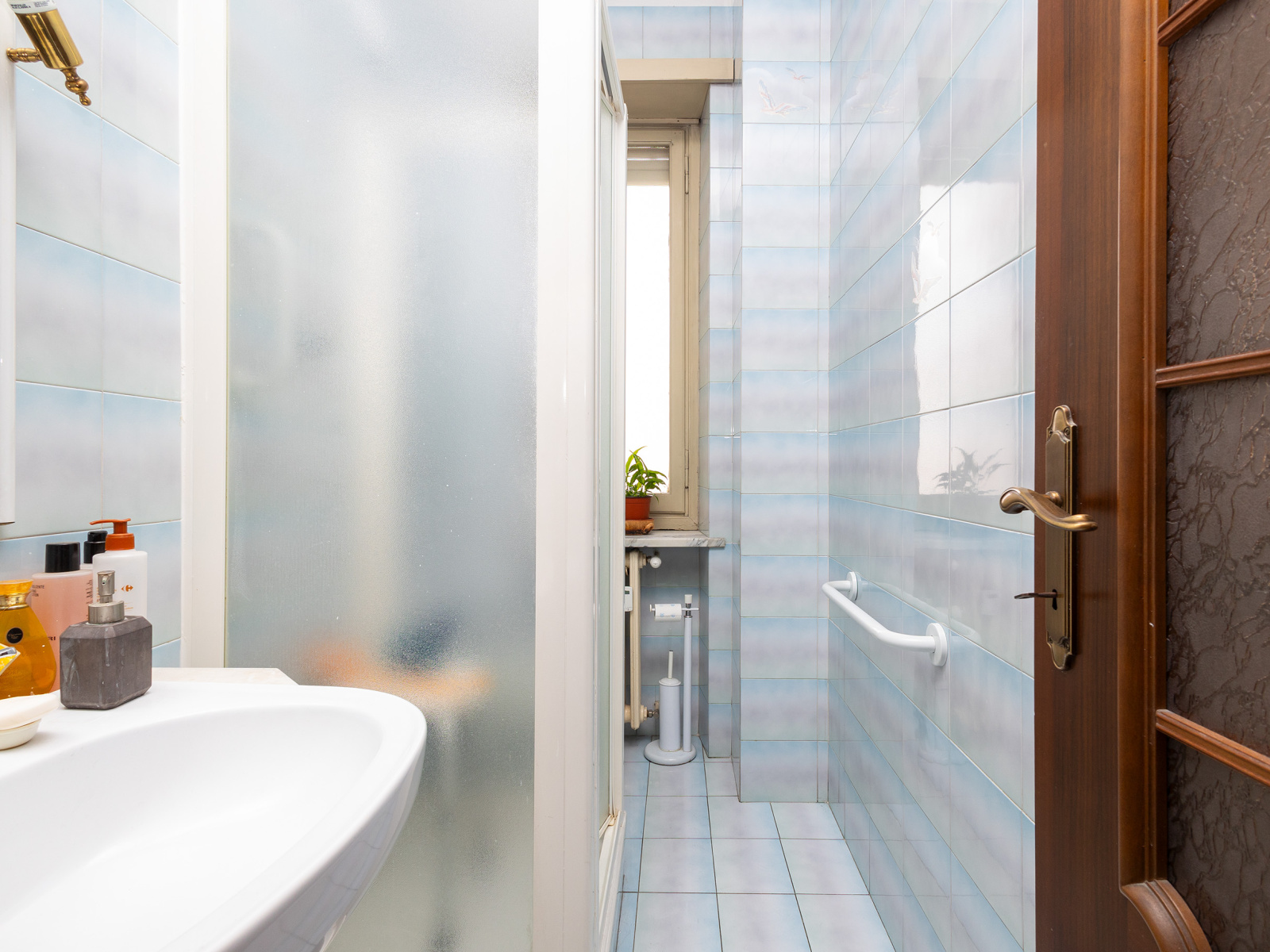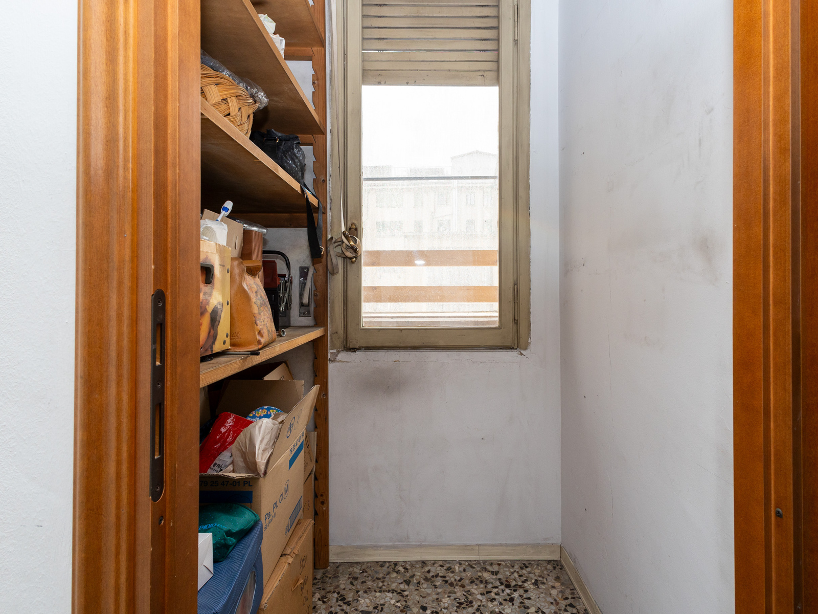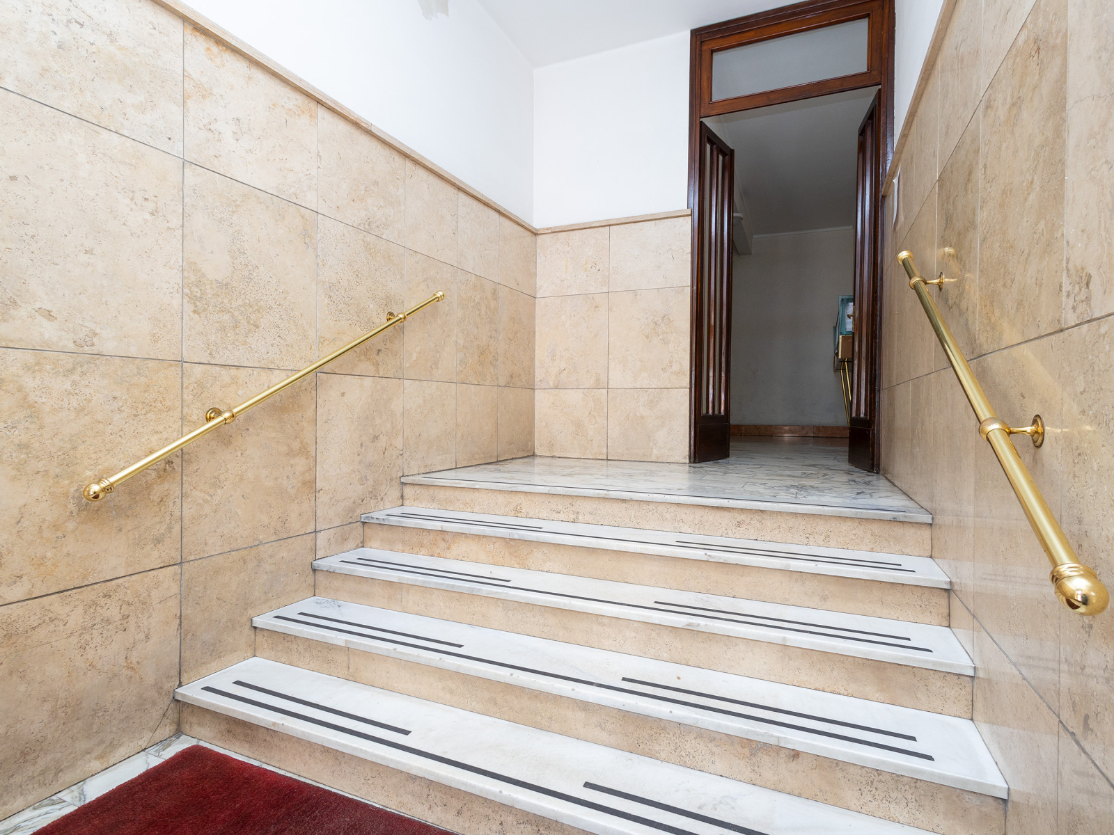 L’appartamento è composto da un ampio ingresso, un salone spazioso, un tinello con cucinotto separato, tre camere da letto matrimoniali, due bagni e un pratico ripostiglio. Dispone di quattro balconi, recentemente rivisti e ripristinati, che offrono una piacevole luminosità e affacci gradevoli.